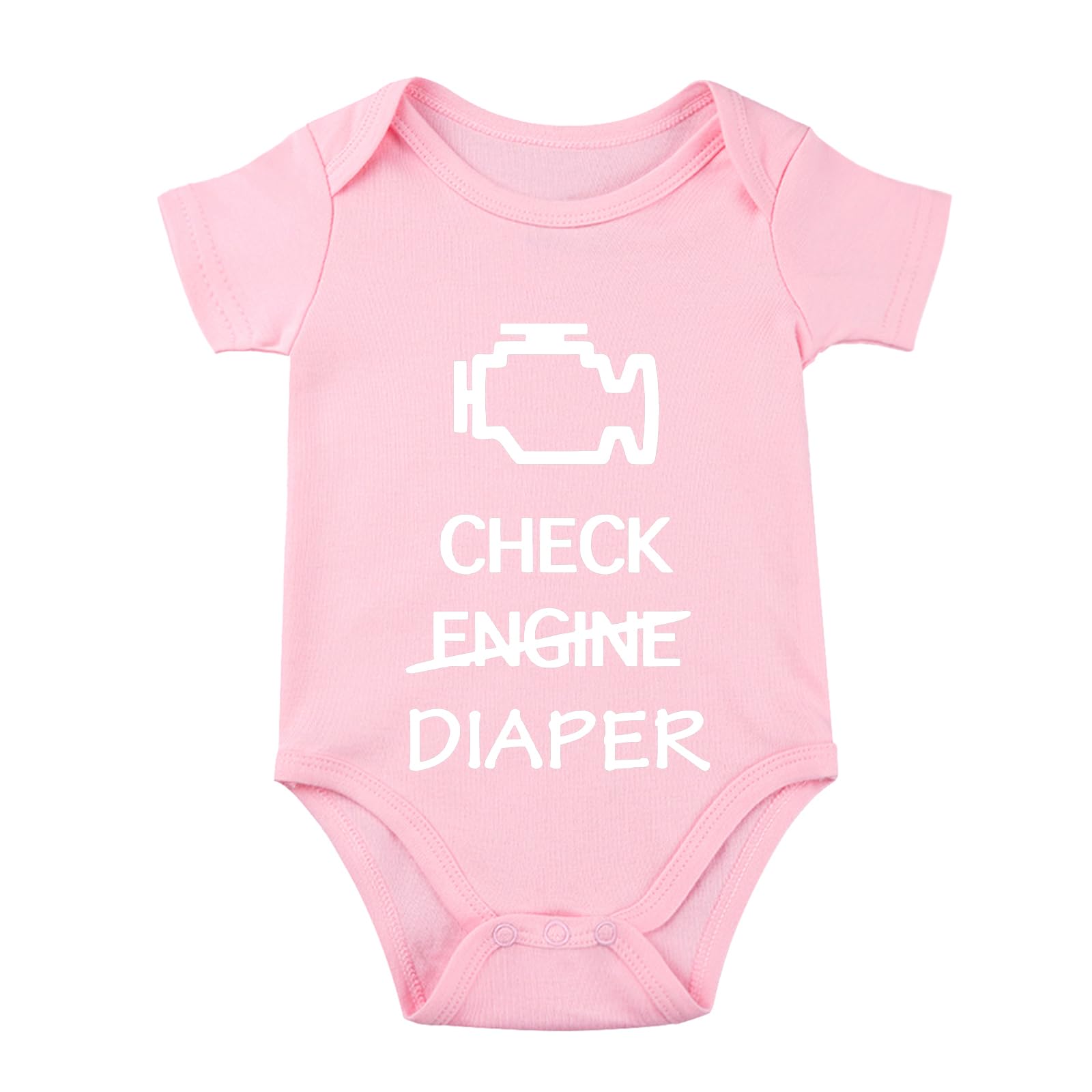 DescriptionOur check engine diaper pattern features the following :95% cottonEnvelope neck design and 3 snaps down at the bottom for closure making it easy access for changing your little ones diaper.To ensure the utmost longevity and integrity of our infant Bodysuitthere are recommended care instructions to follow:Never bleach it or get it dry-cleaned.Avoid ironing directly on the design.